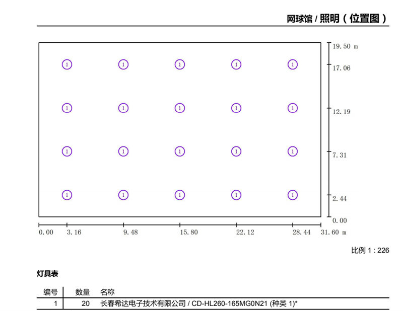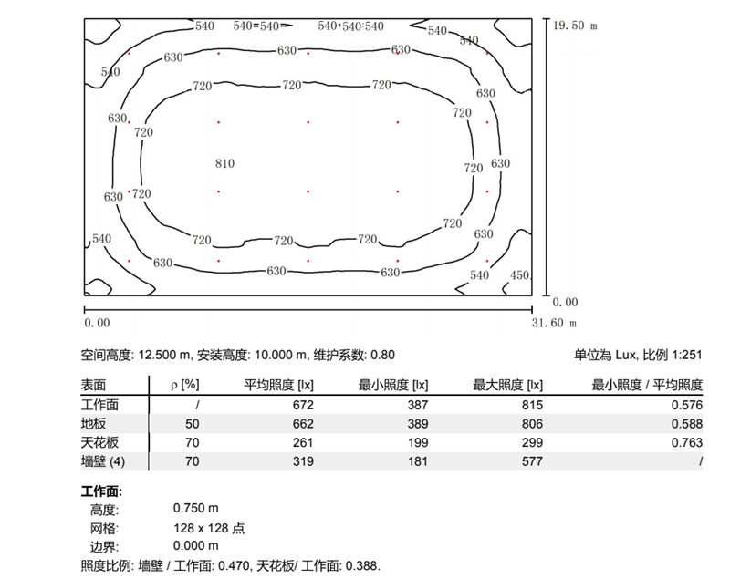 采用高光效COB光源,光源光效大于170lm/W,顯色指數≥70,滿足專業比賽級體育場館照明要求。