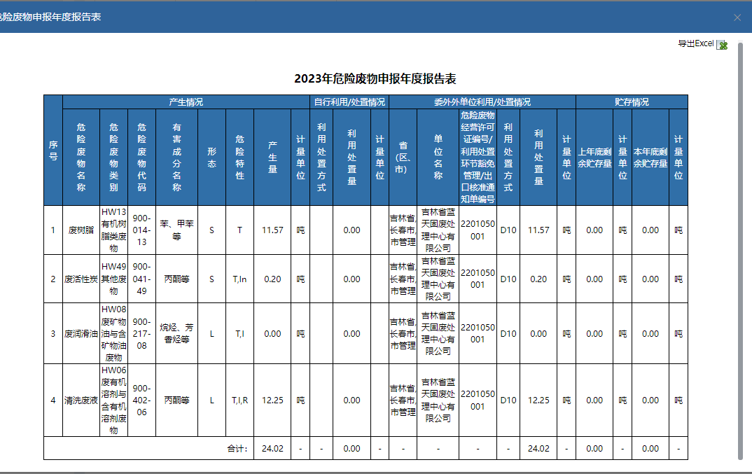 8 | 2024年計(jì)劃危廢產(chǎn)生量 | 清洗廢液:30噸 廢潤(rùn)滑油:1噸 廢活性炭:0.5噸 廢樹脂:25噸 |