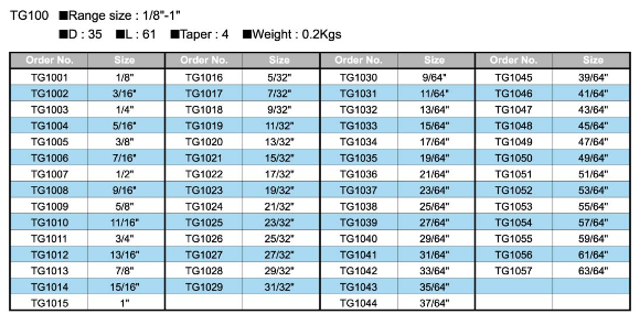 TG100 SPRING COLLET SYSTEMTG100 SPRING COLLET SYSTEM