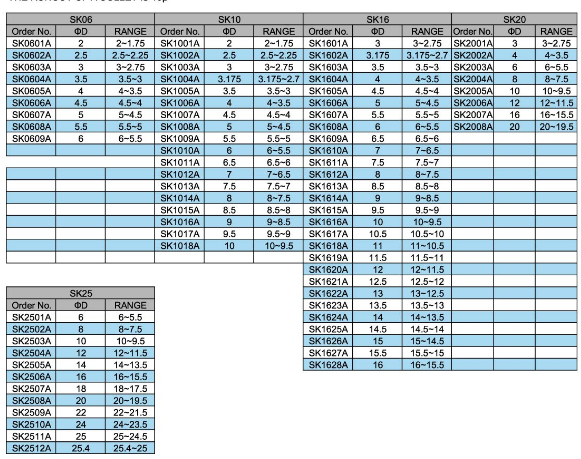 SK SPRING COLLET SYSTEM A CLASS,AA CLASSSK SPRING COLLET SYSTEM A CLASS,AA CLASS