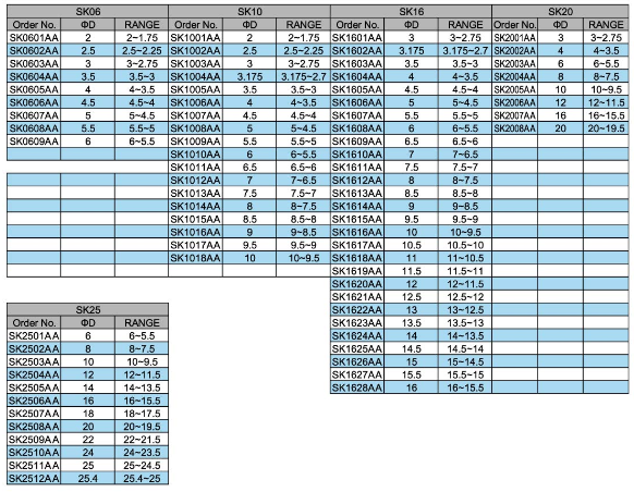 • SK SPRING COLLET SYSTEM A CLASS,AA CLASS
