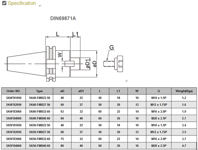 • Product description: SK/FMB FACEMILL ARBOR:SK40→M16 x 2.0P,SK50→M24 x 3.0P