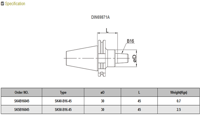 • Product description: SK/B16 DRILL CHUCK ARBOR:Draw Bar:SK40→M16 x 2.0P,SK50→M24 x 3.0P